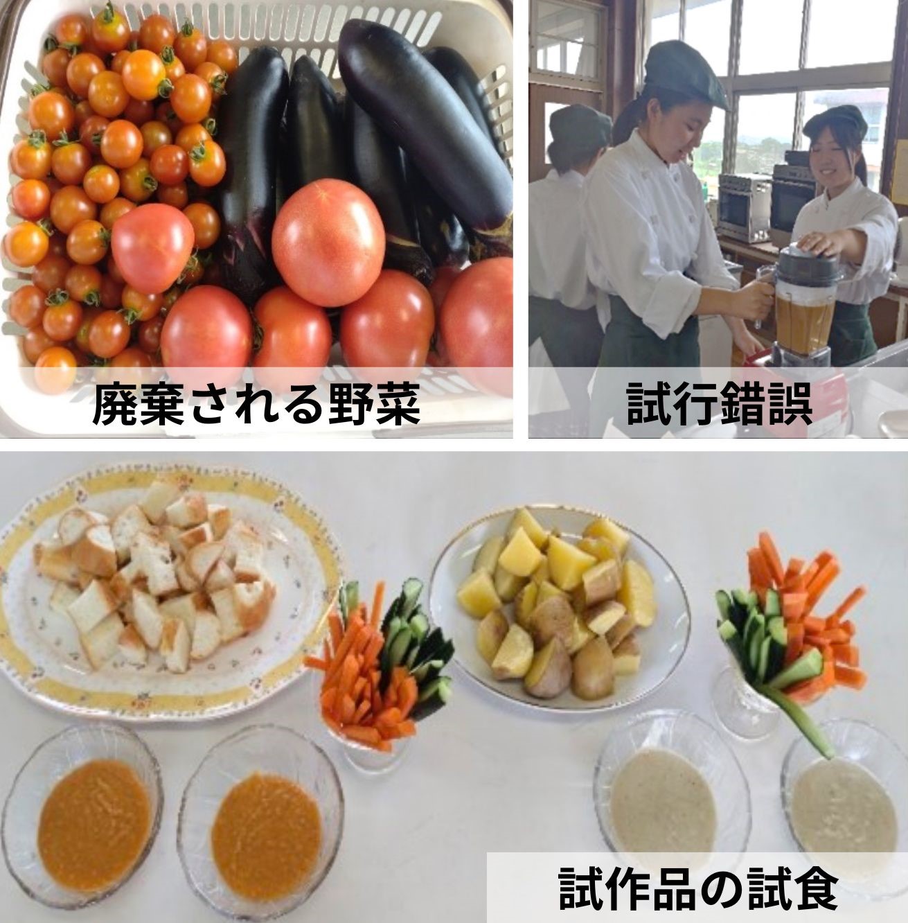 本校で採れる野菜の中には、規格外のものや余ってしまうものがあり、廃棄されてしまう現状があります。この現状をどうにかしたいと思い、今回の商品開発に取り組みました。