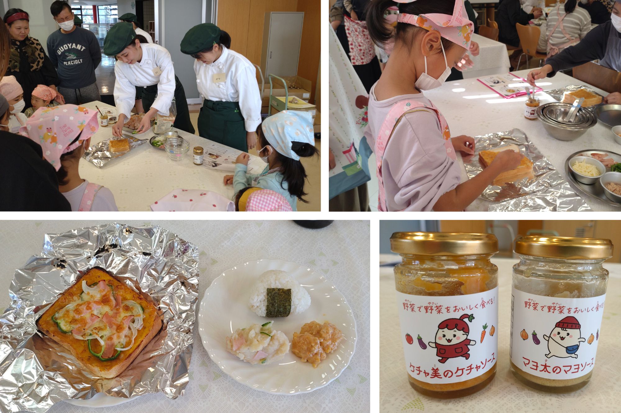 11月1日(土)、「ケチャ美」と「マヨ太」の初のお披露目の場として、「食の創造館」にてキッズ料理講習会を実施しました。講師は「いしない食育研究所」の石動敬子様と、私たち西条農業高校 調理班のメンバーです。