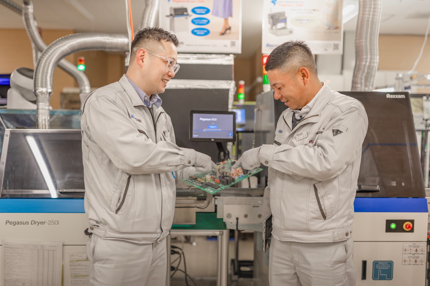 電子機器や医療機器、精密機器、スポーツ関連製品など、さまざまな分野の製品を手がける(株)レクザム。エレクトロニクス技術を強みに、多彩なモノづくりを行っています。その製造拠点の1つである西条工場では、製品に組み込まれる電子基板の実装工程を担当し、モノづくりの品質を支える重要な役割を担っています。