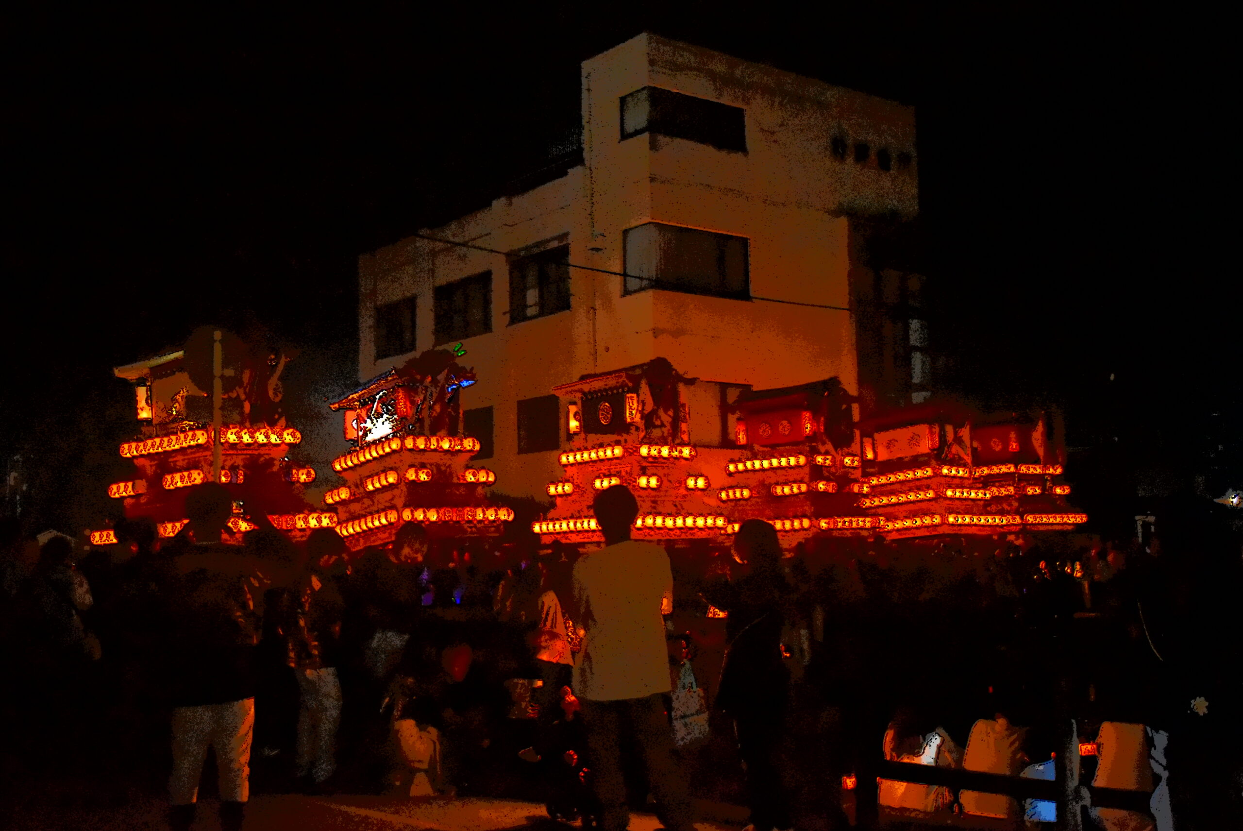水面に浮かぶ”だんじり”が映える美しさ at 神拝荒神祭