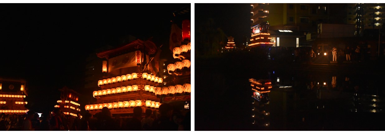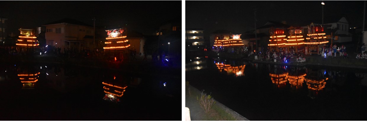 次の2 箇所は、この記事のタイトルにある「水面(みなも)に浮かぶ”だんじり”の映える美しさ」を目の当たりにできる。では、写真を交え紹介する。