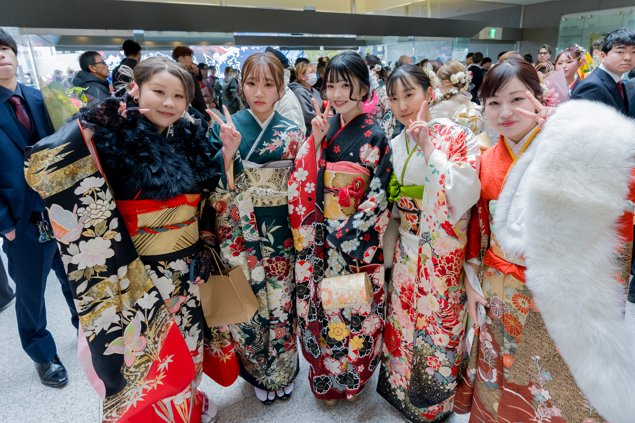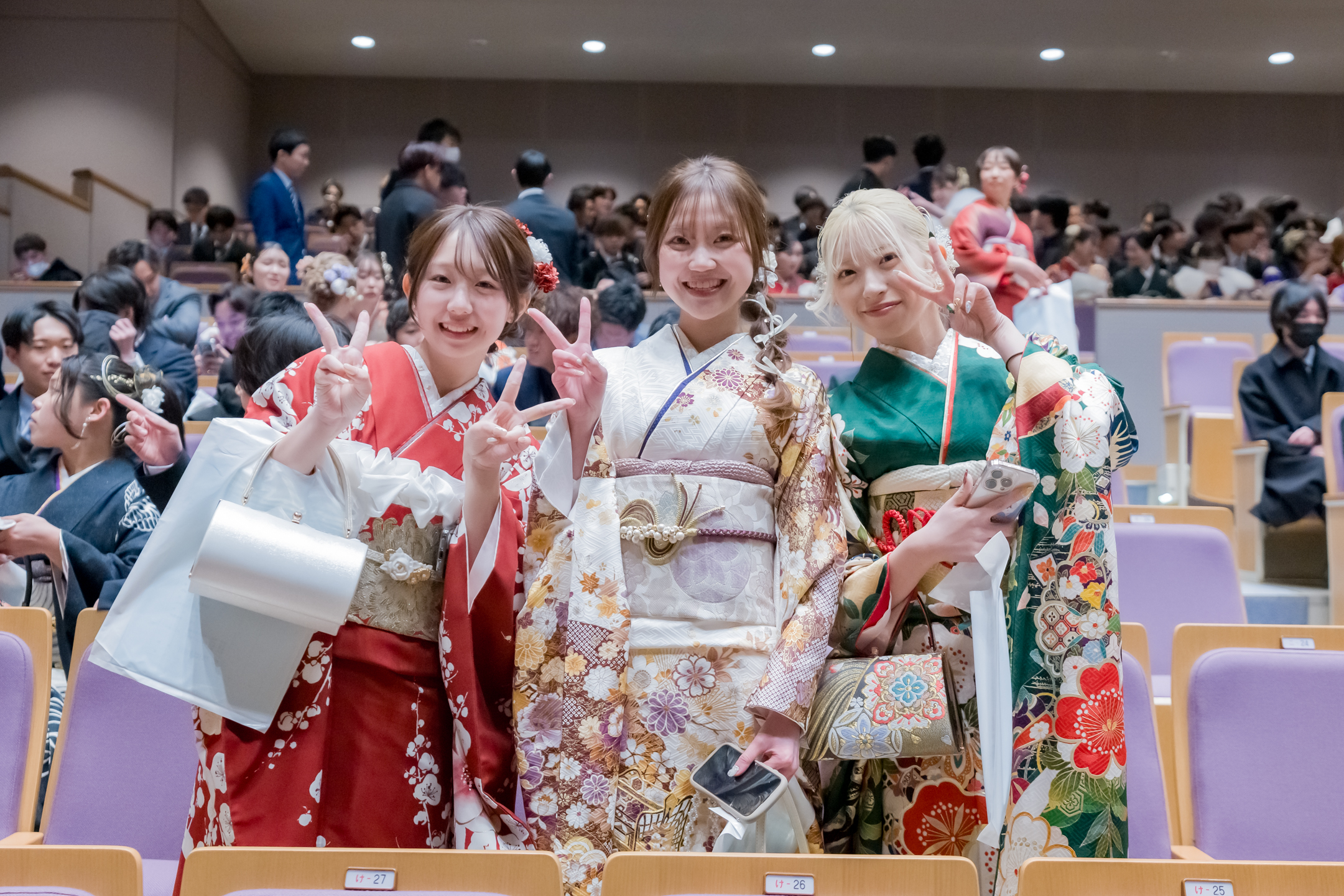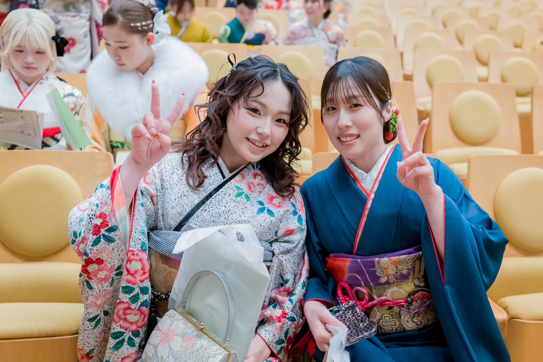 友人との再会を喜ぶ姿や、思い思いの装いで式典に臨む表情など、二十歳ならではの雰囲気が広がっていました。
