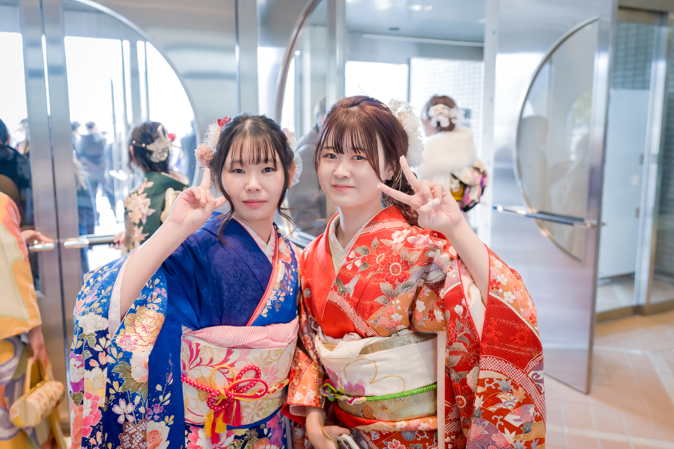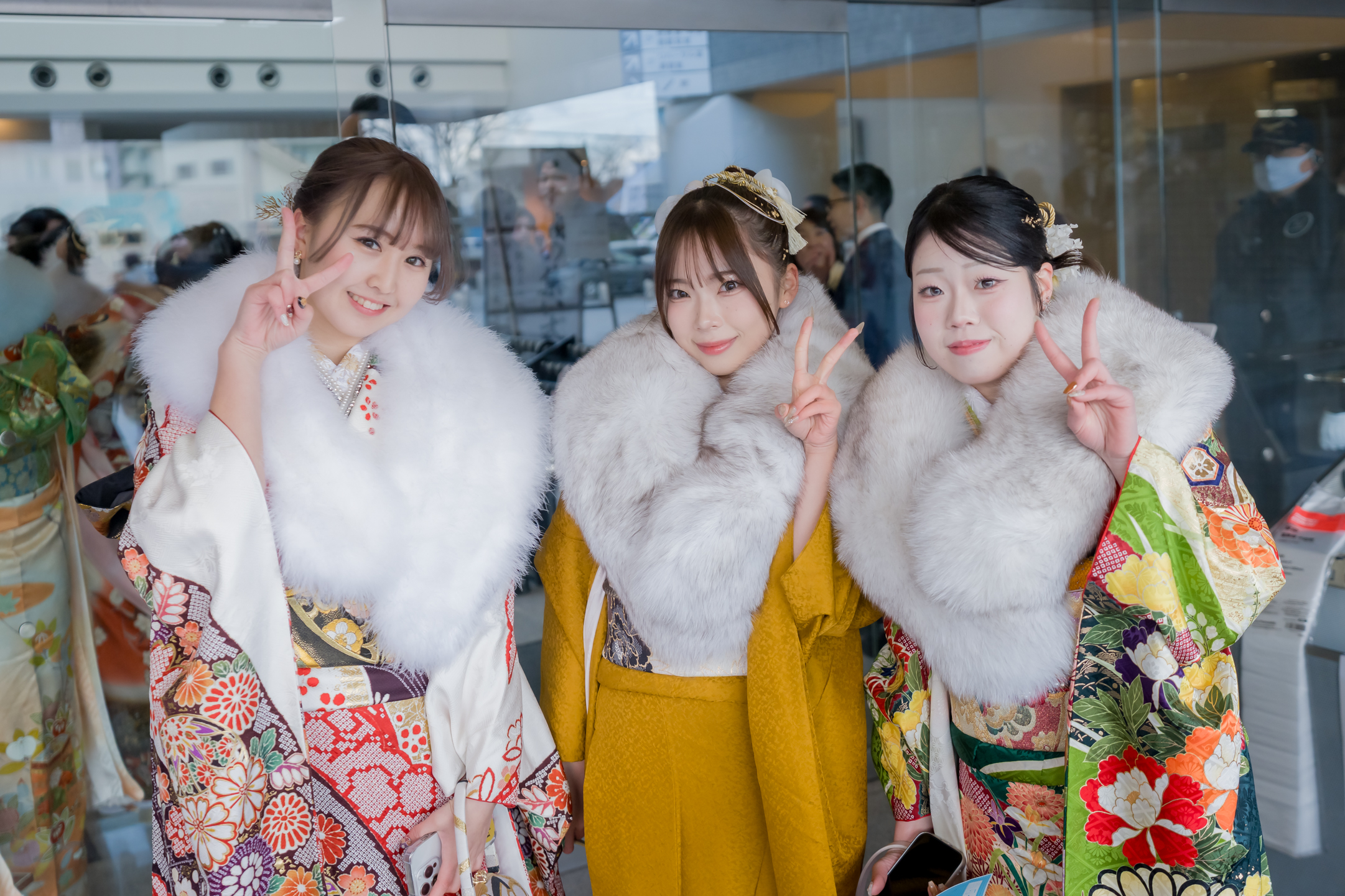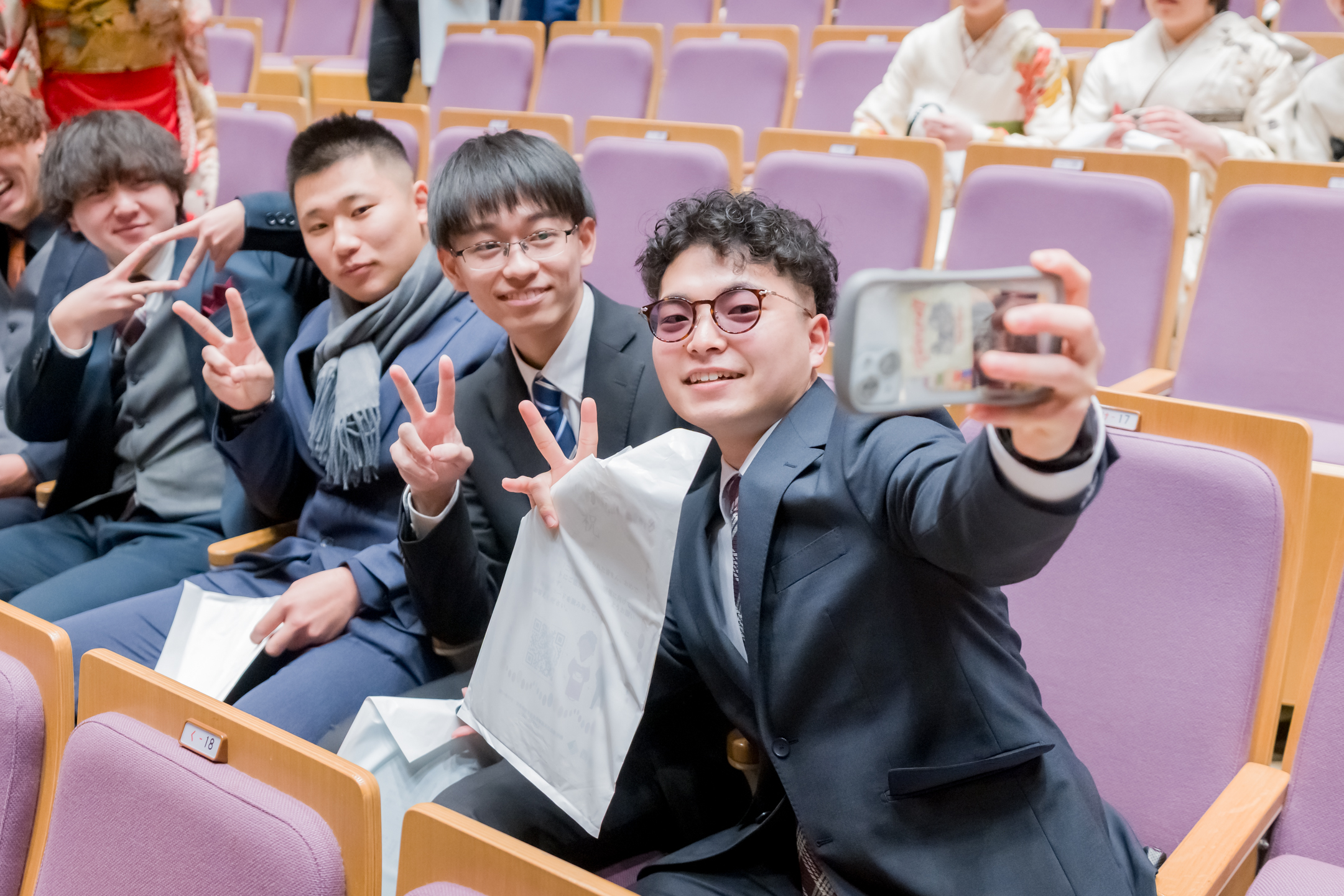 友人との再会を喜ぶ姿や、思い思いの装いで式典に臨む表情など、二十歳ならではの雰囲気が広がっていました。