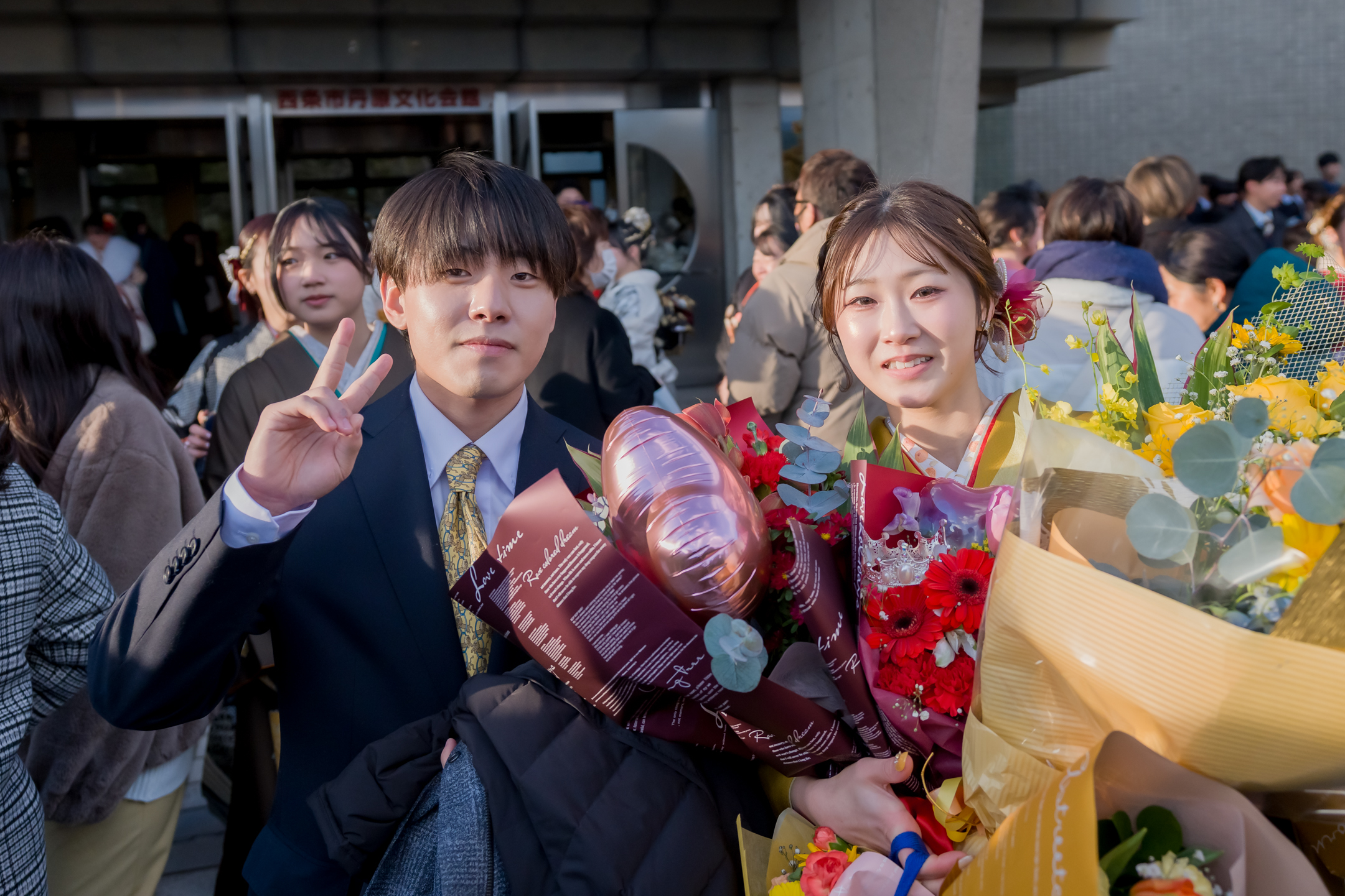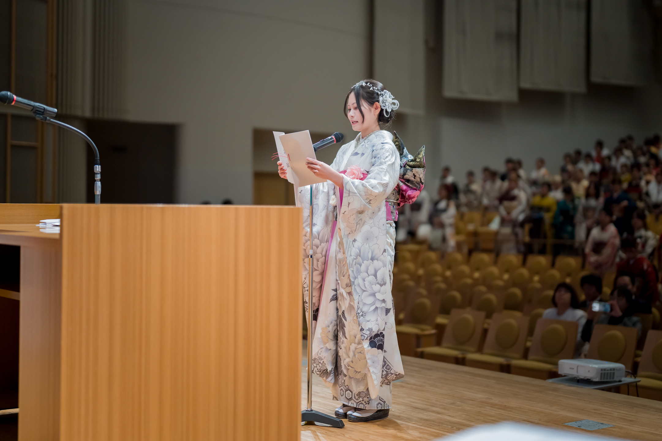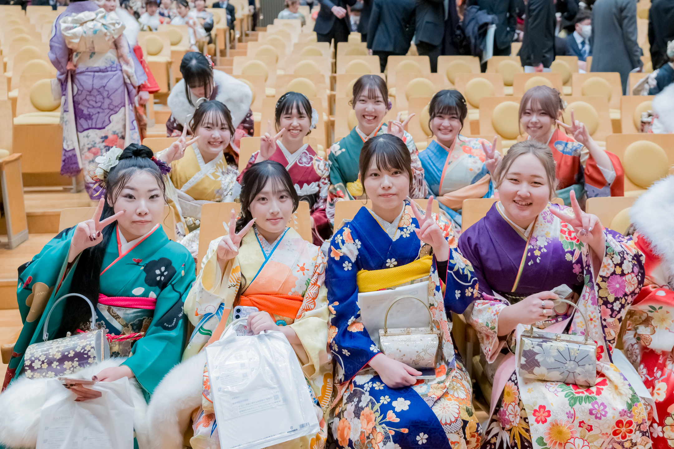 華やかな振袖や袴、きりっと決まったスーツ姿の二十歳の皆さんが集まり、笑顔と活気に包まれる1日。