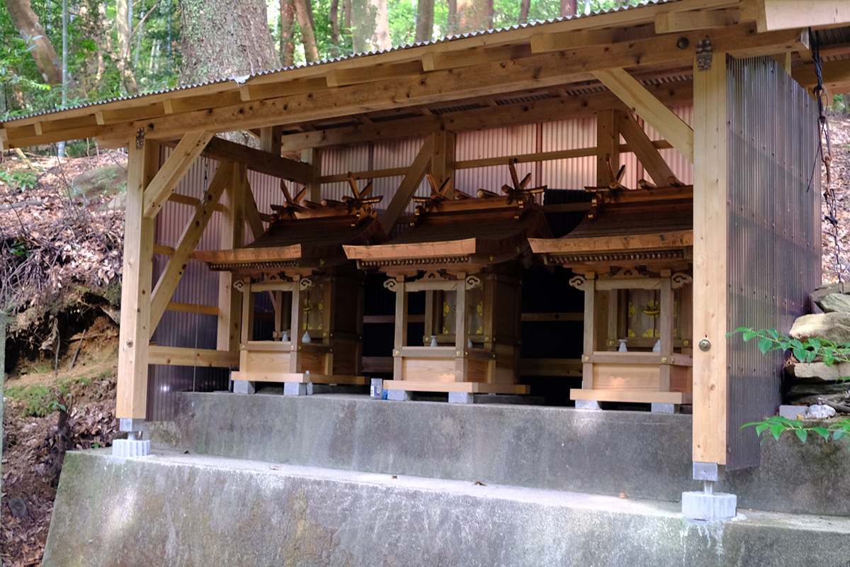 急な階段を登って鳥居をくぐってすぐ右にその3社はありました。