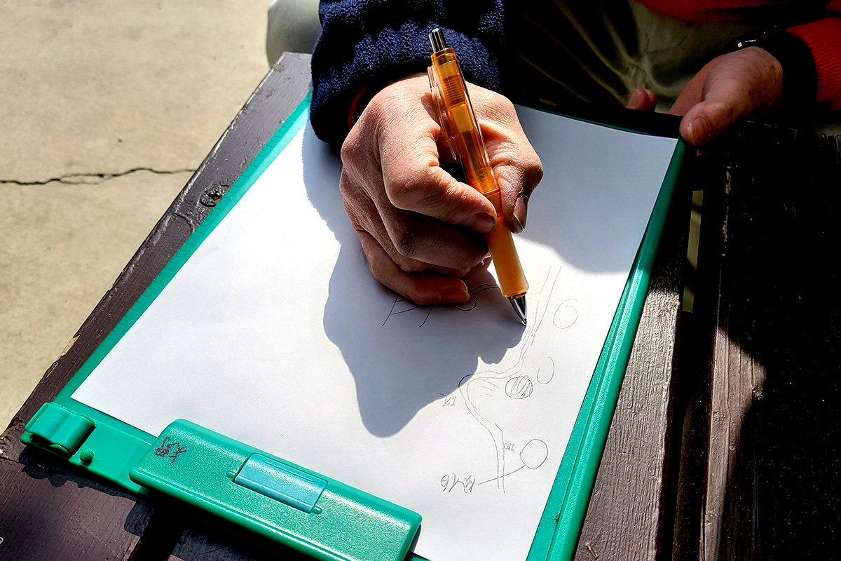 市之川公民館の矢野館長に神社へ行くための地図を描いてもらいました。