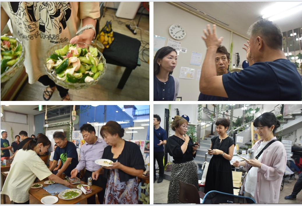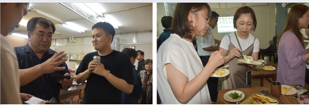 会員が持ち寄ったお酒なども入り、名刺交換や笑い声の絶えない交流が図れていた。かぼちゃグラタンやフライドポテト、唐揚げなどがテーブルに並び、参加者は舌鼓を打っていた。
