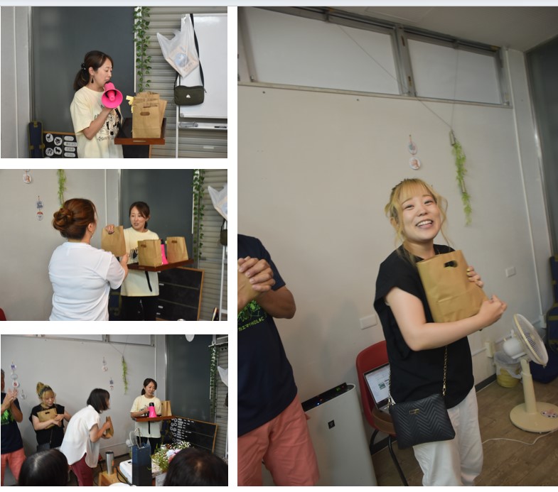 参加者が1,000円前後のプレゼントを用意(任意)。そして、番号順に呼ばれ自己紹介とともにそのプレゼントの説明をした上で、プレゼント交換を実施した。またプレゼントの中には、価格高騰中のお米もあった。