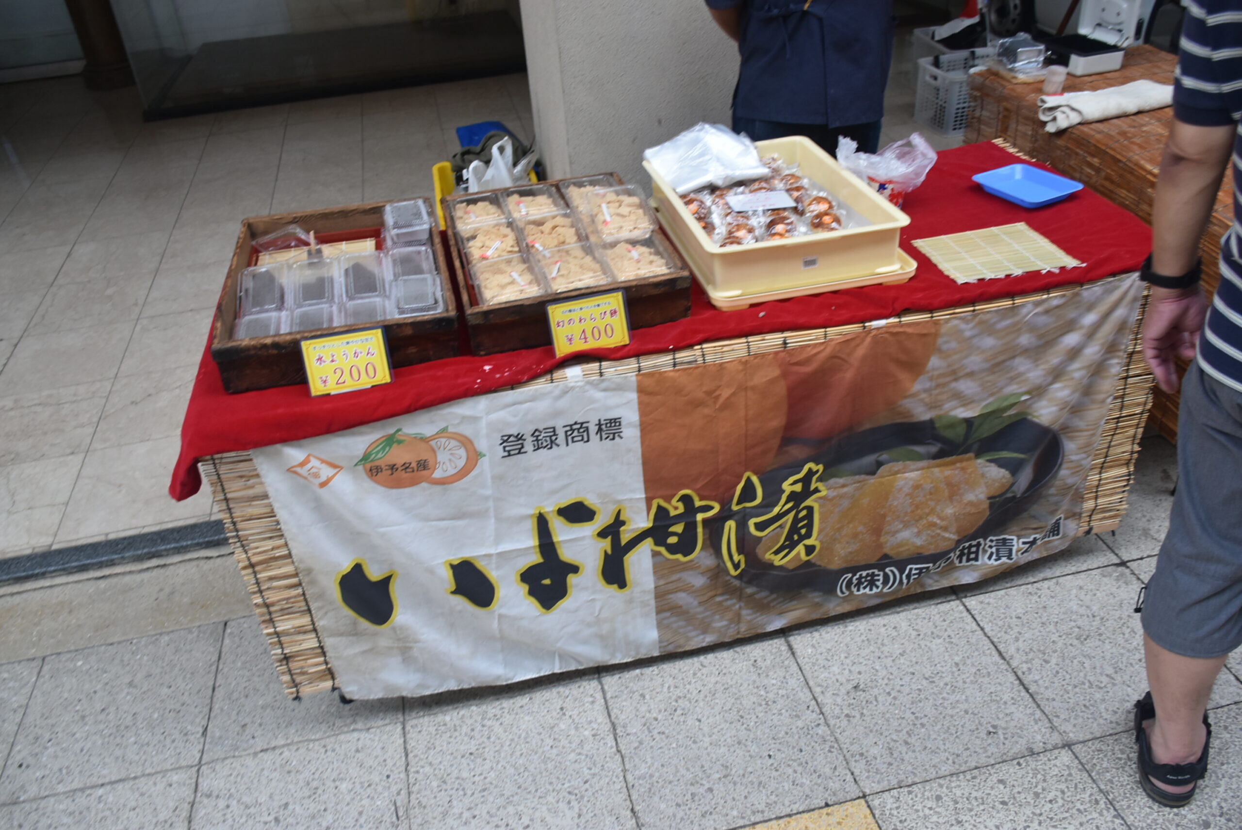 お隣り新居浜市からの出店。わらび餅の試食があった。店頭販売の練習がてら参加したそう。近くの蜂蜜を売っている人が手伝っていたのを覚えている。