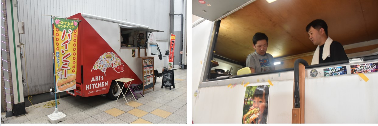 ベトナム式バインミーやフォーを扱うキッチンカー。中を覗くと、店主以外にみたことのある顔がwww