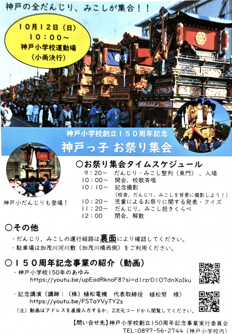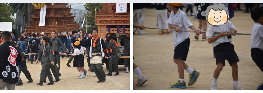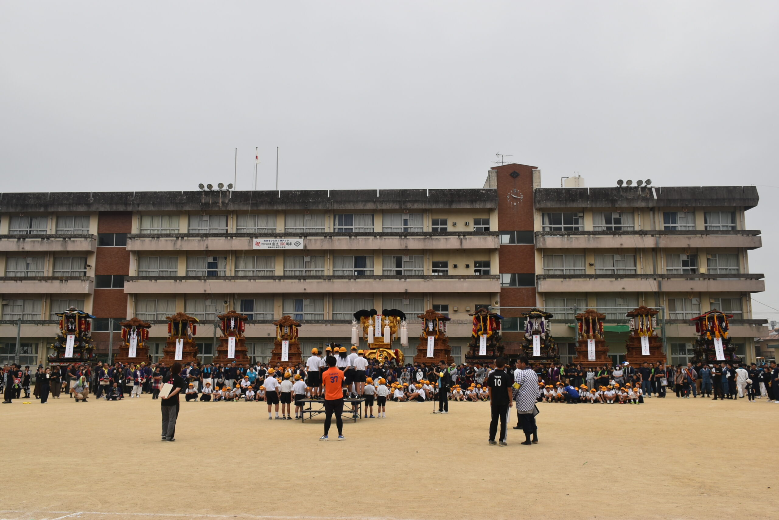 2025年10月12日、神戸小学校創立150周年を記念し、「神戸っ子お祭り集会」が実施された。この日はナクリー(台風23号の名称)の影響を受け、生憎の曇り空であったが、雨に降られることなく24~25℃という、少し汗ばむ天候だった。