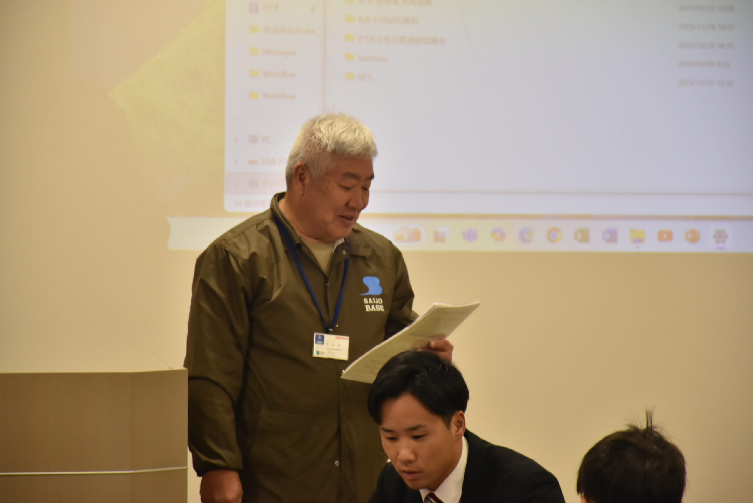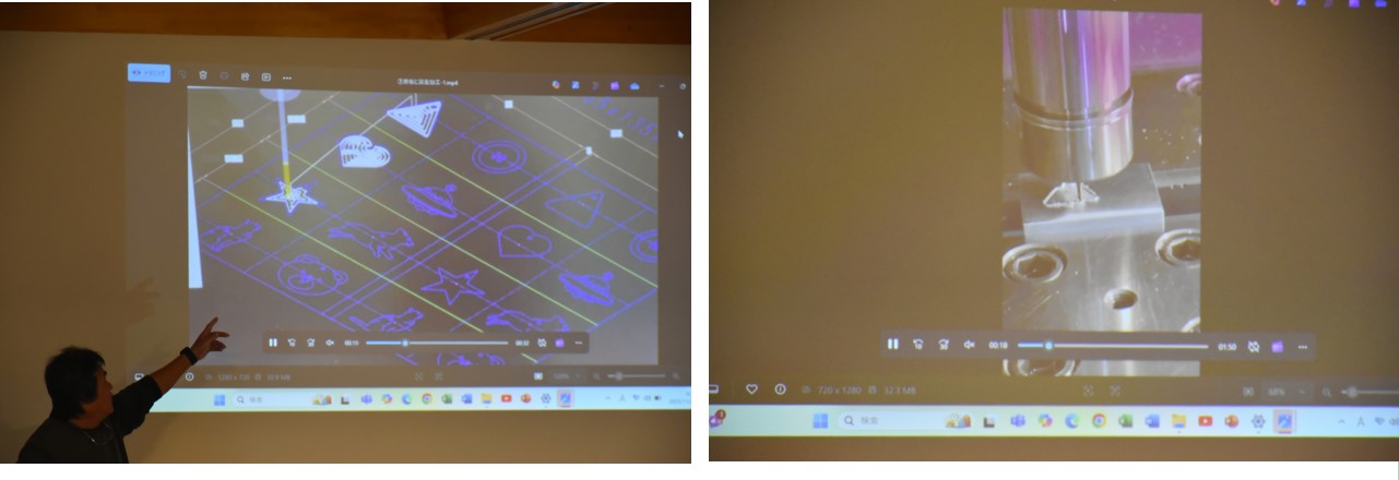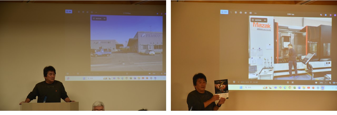 最初にSICSの秋山氏から開会の挨拶と東予高校の井原教頭、十河教諭、株式会社フラスコの藤原社⾧の紹介、その後、写真や動画を見ながら株式会社フラスコの紹介と金属について話していた。