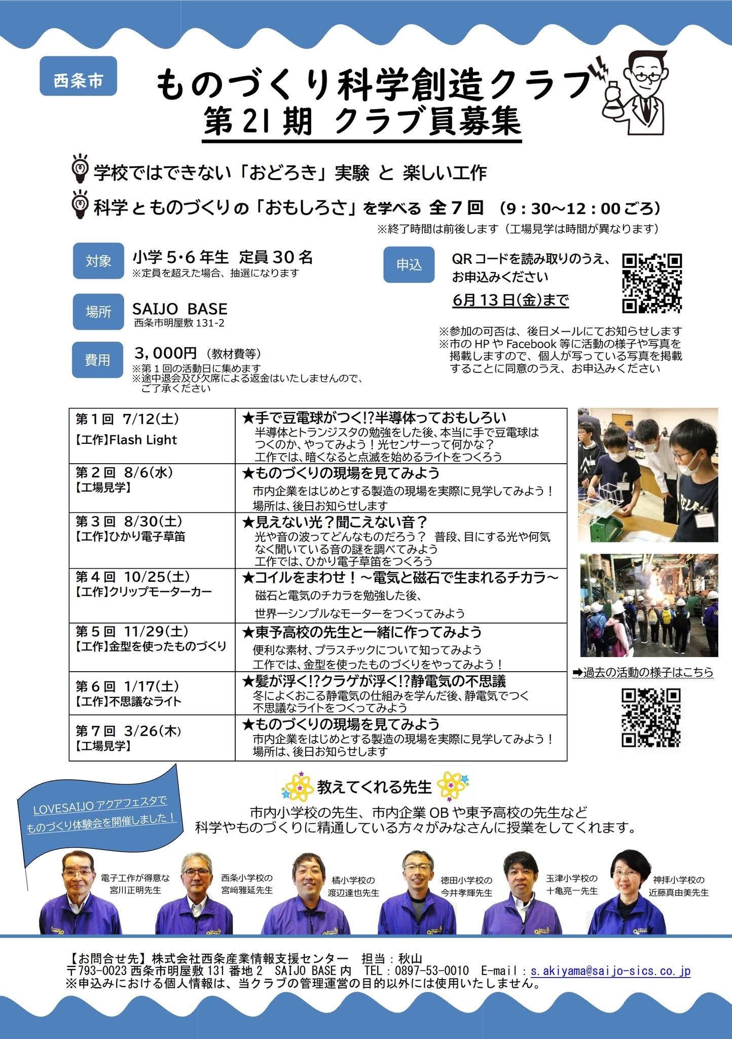 (詳しくはこちら「西条市ものづくり科学創造クラブ」の紹介