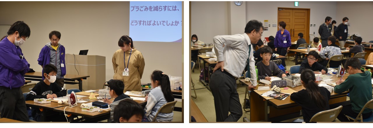 学びの時間が終わり、金型とプラごみを使ってものづくりを体験する時間が始まった。