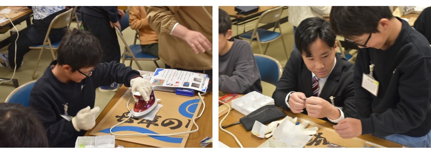 始まってみるとアイロンが使えないアクシデントがあったが、こどもたちは楽しそうに3回、4回と、色々パターンを変えて作っていた。