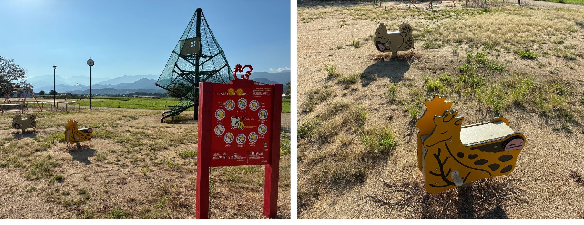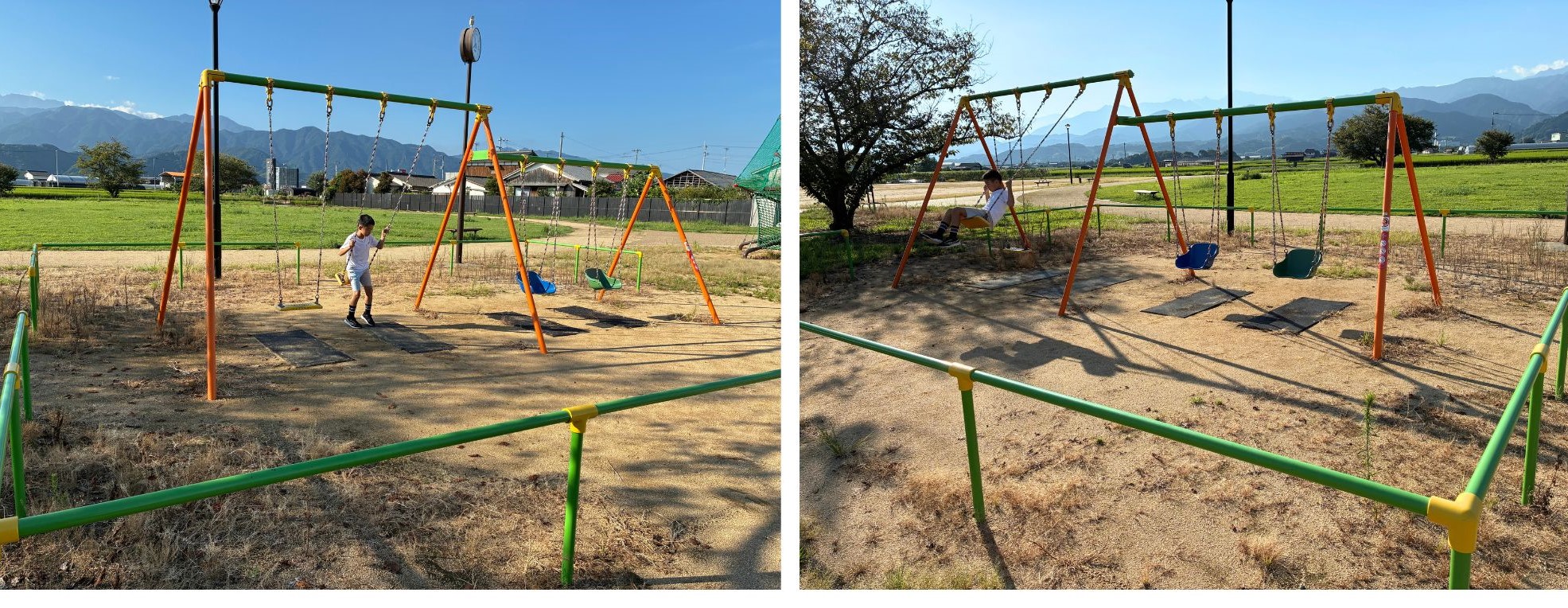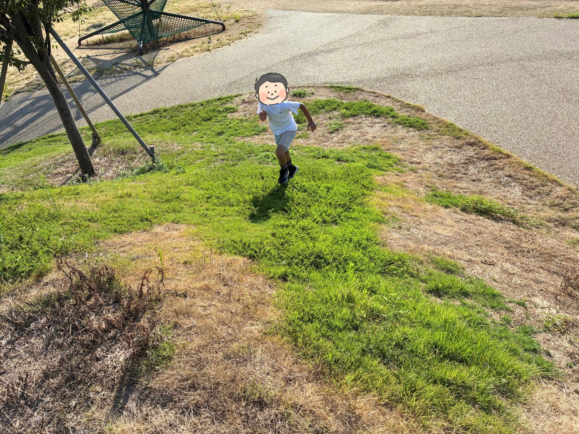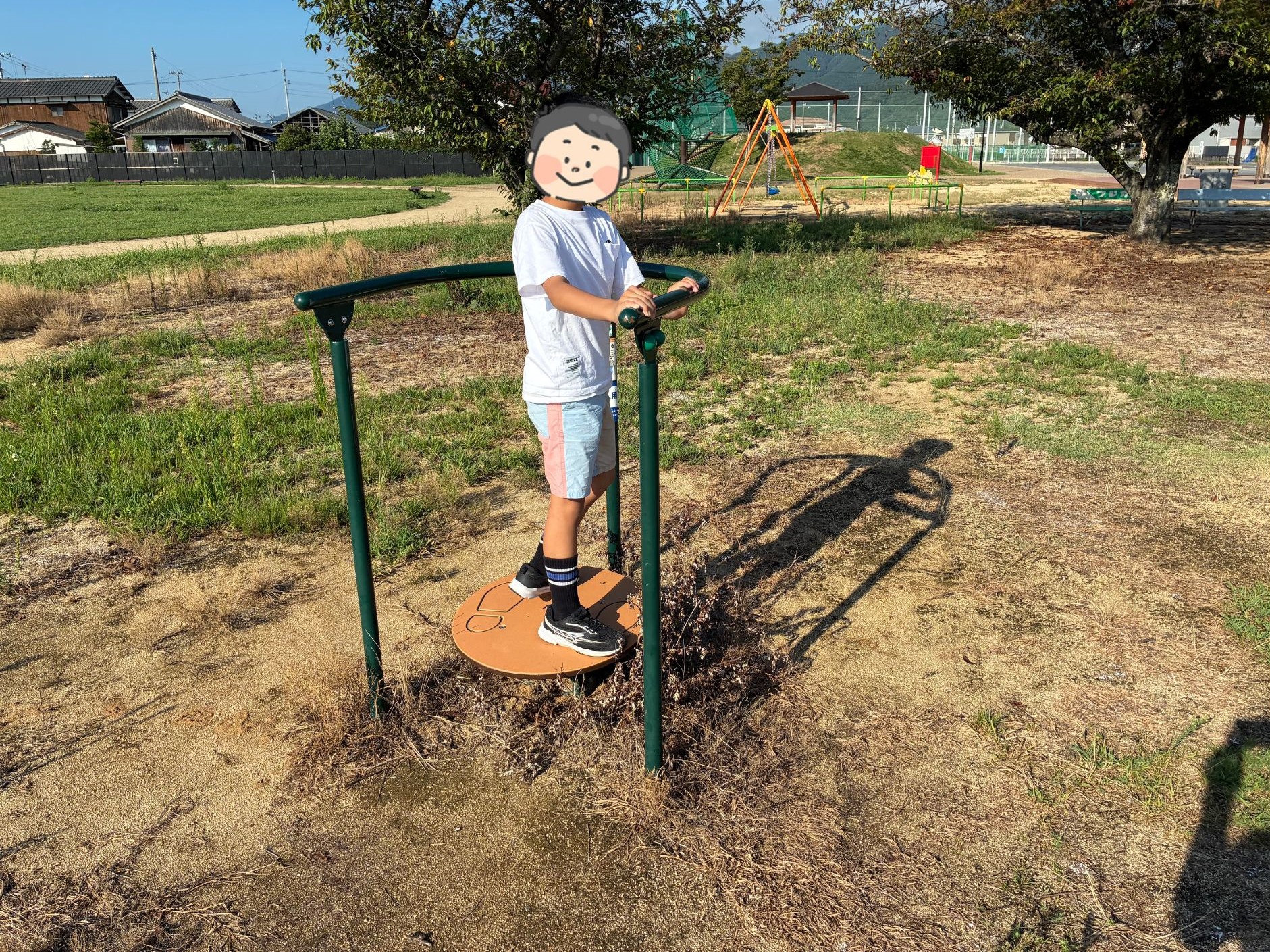 息子は、公園に到着早速、ブランコアニマル型のユラユラ遊具網でできたジャングルジムなどで一通り体験。