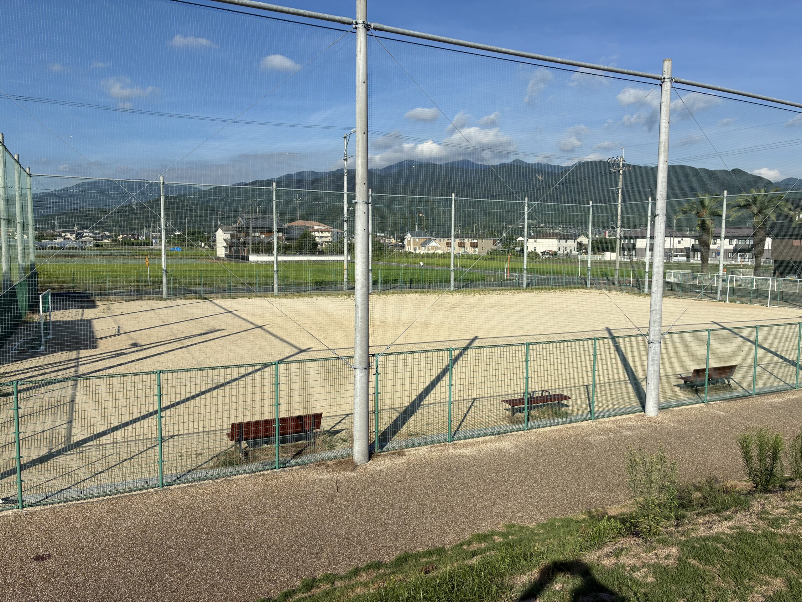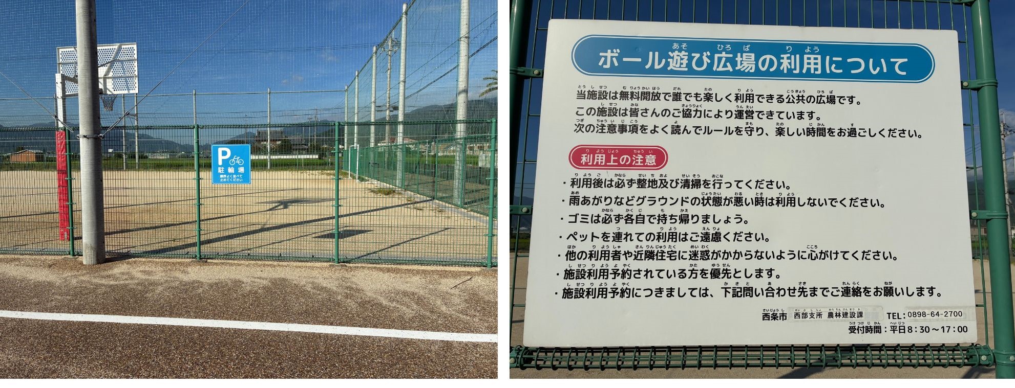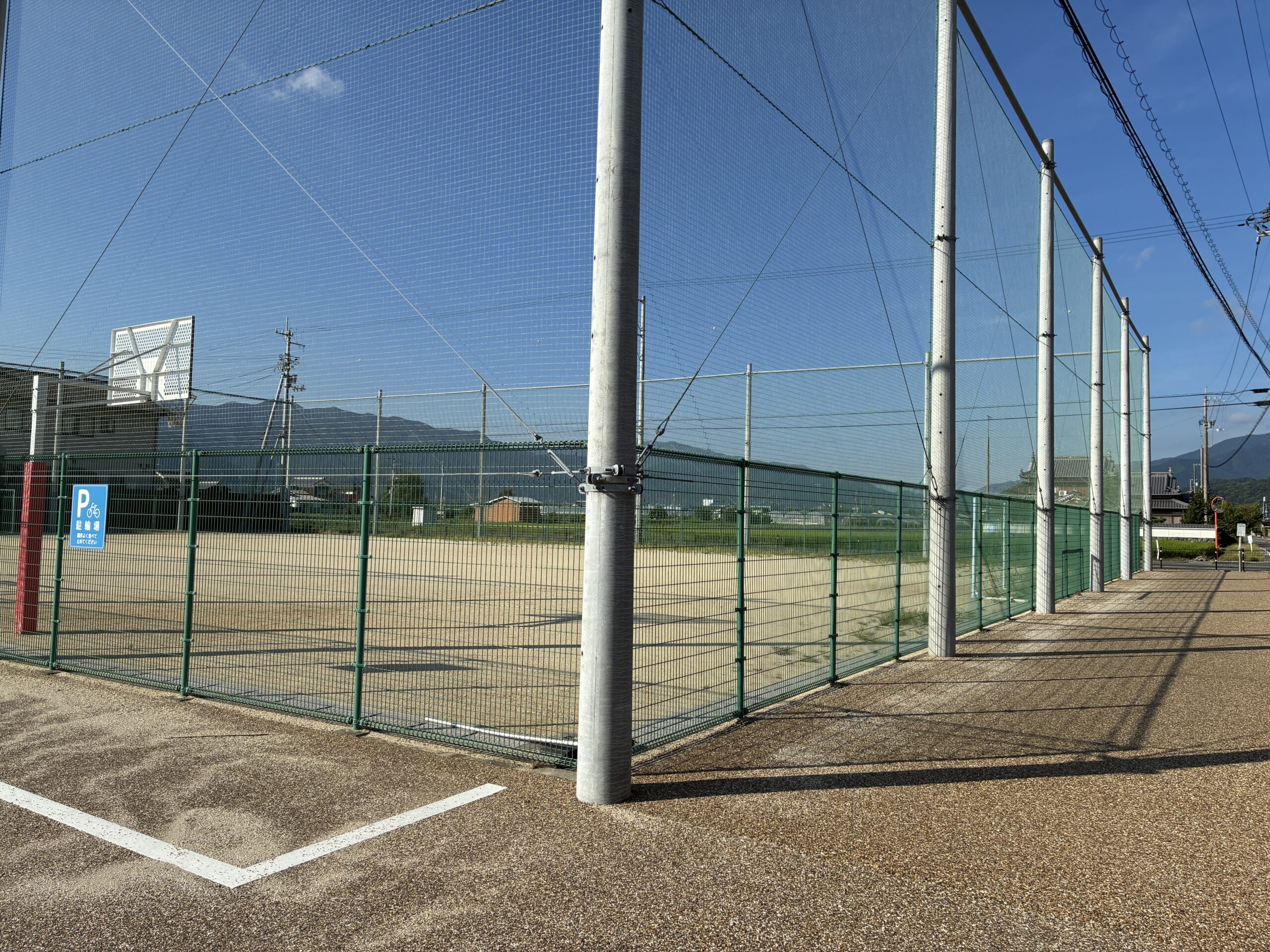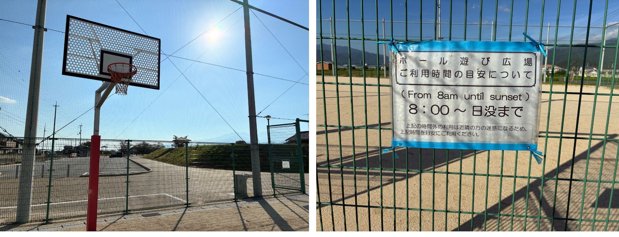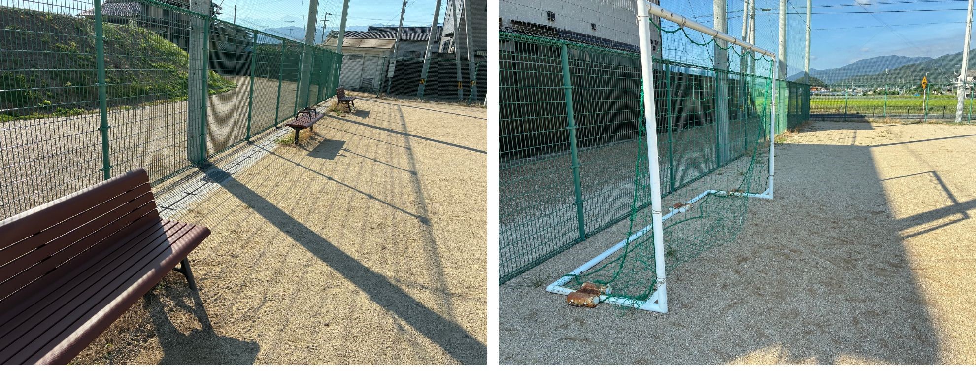 コート中には、ベンチスペースサッカーゴールバスケットリングが設置されていました。