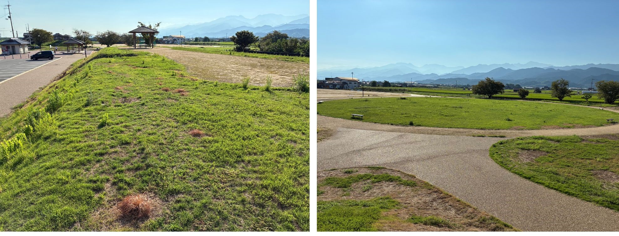 ボール遊び広場の外にある憩いの丘は、少し高い丘になっており、丘の上には四阿があります。この丘の上から、公園一帯を見渡すことができます。