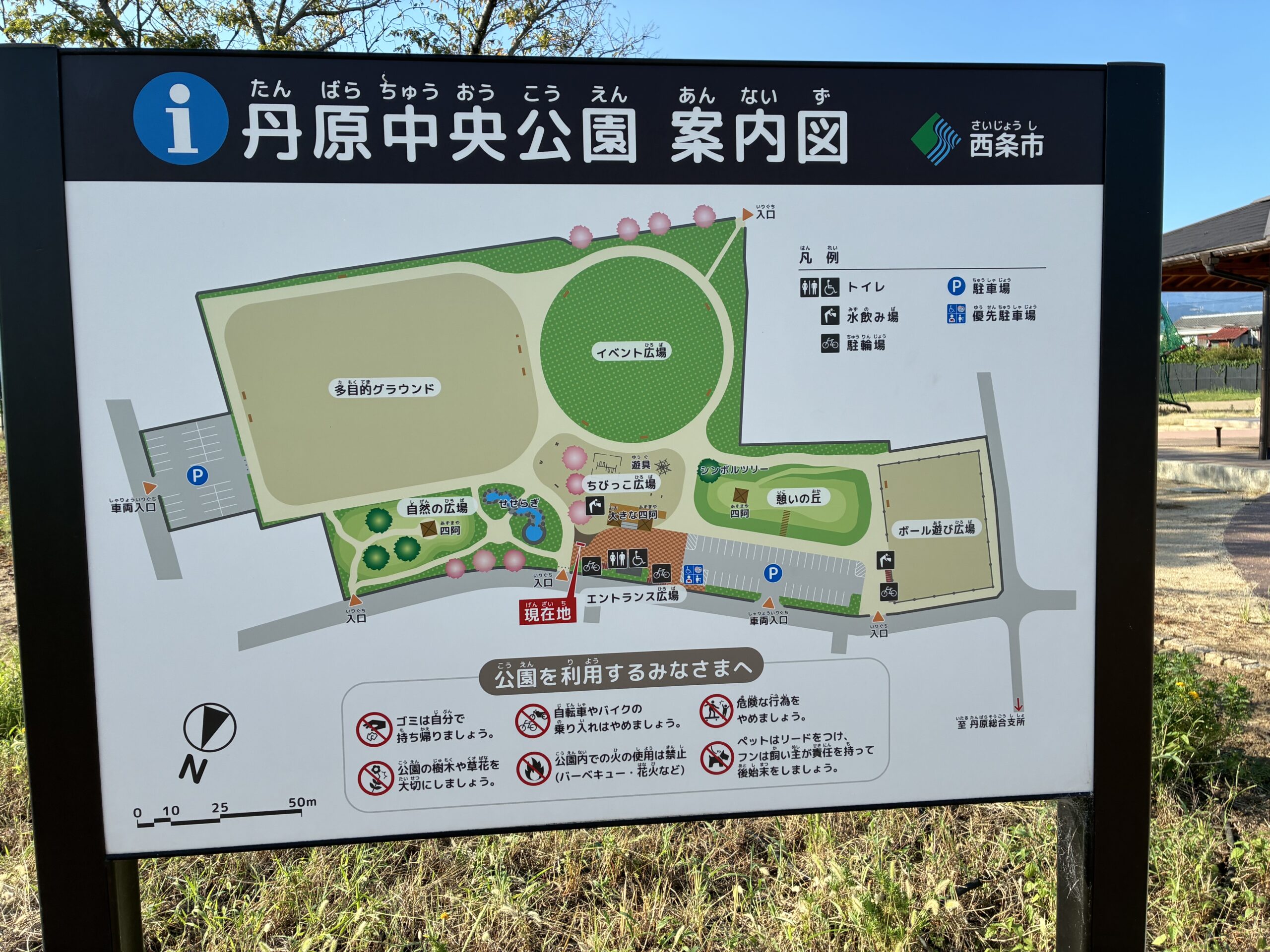 公園入口には、丹原中央公園の案内図があり、全体像が観ることができます。