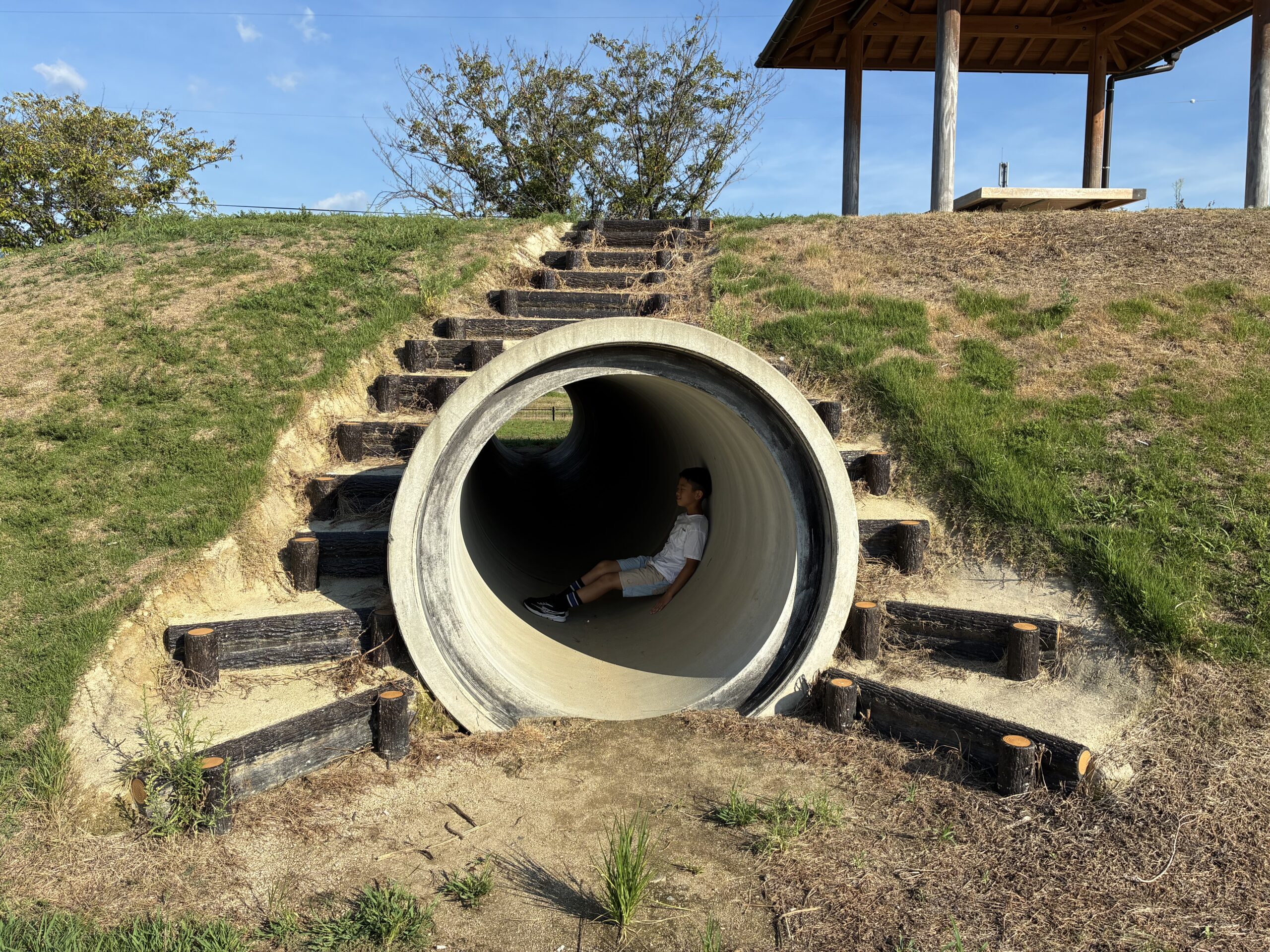 土管の長さも5mくらいで、秘密基地のような空間で、少年心をくすぐられる場所です。