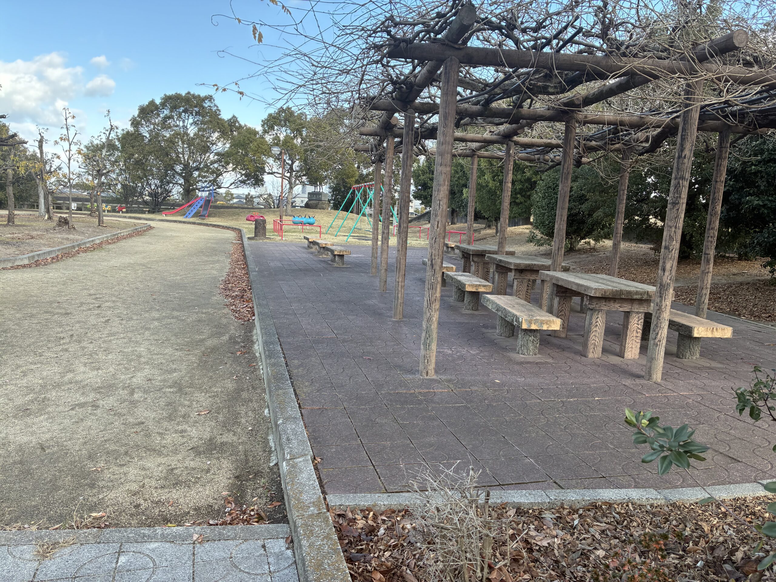 この遊具の傍にもベンチがあり、春には公園の桜の木などを眺めて花見や暖かい日にはピクニックなどができそうな広さでした。