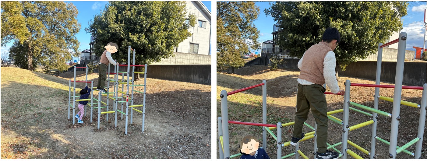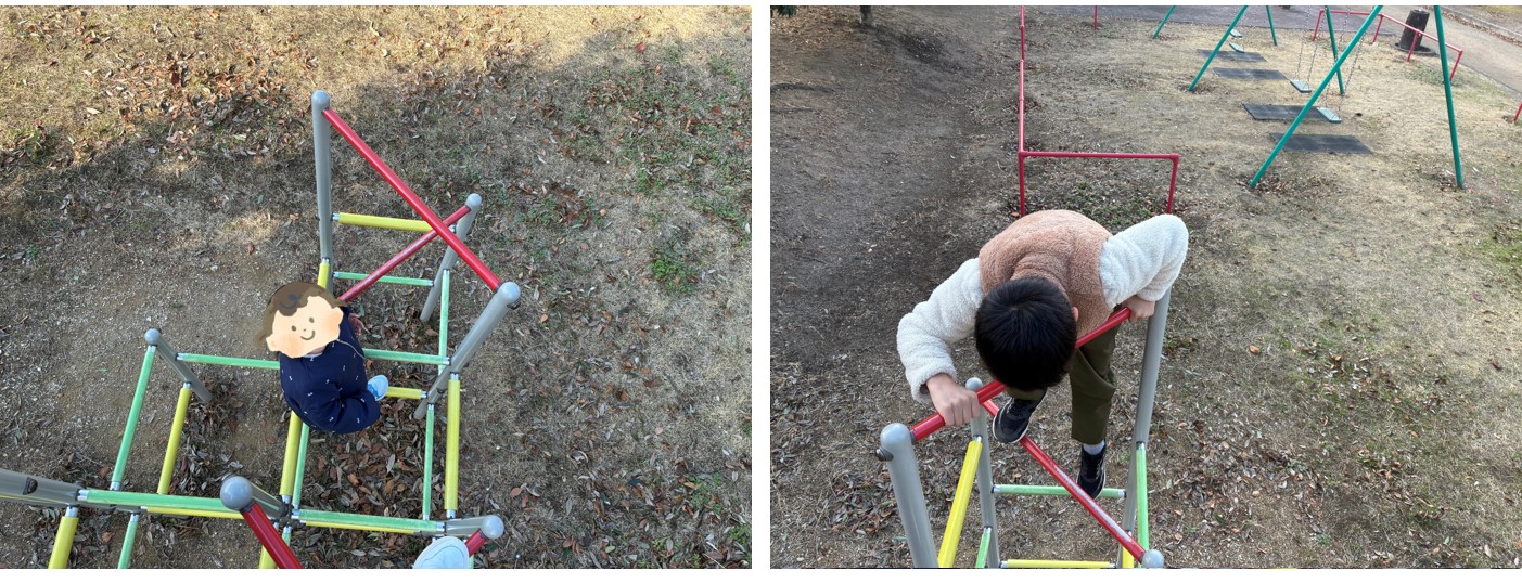 子ども達は、斜めの鉄の棒の存在に関係なく楽しく登っていました。