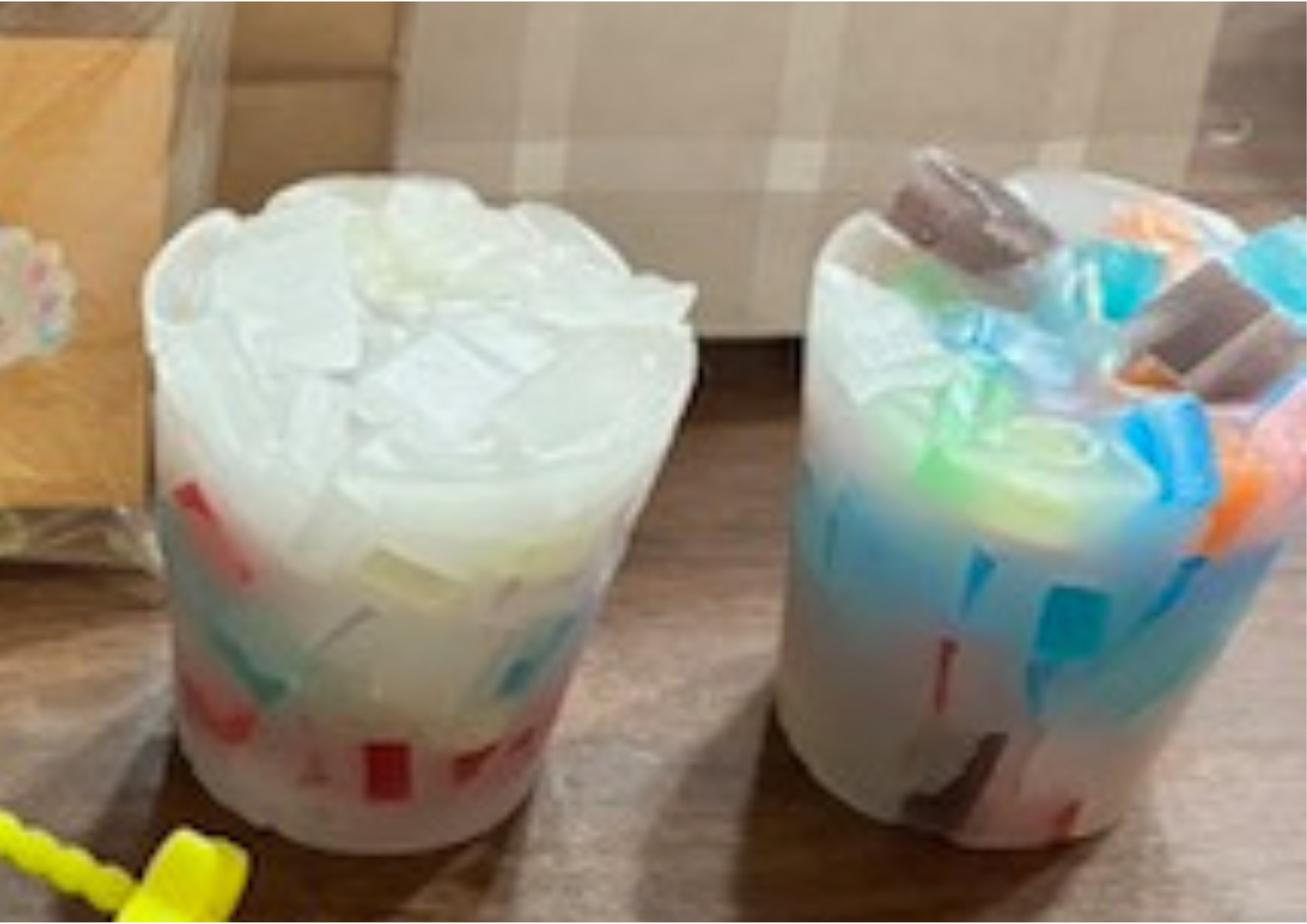 普段見るものと違ったカラフルな蝋燭の出来上がり。