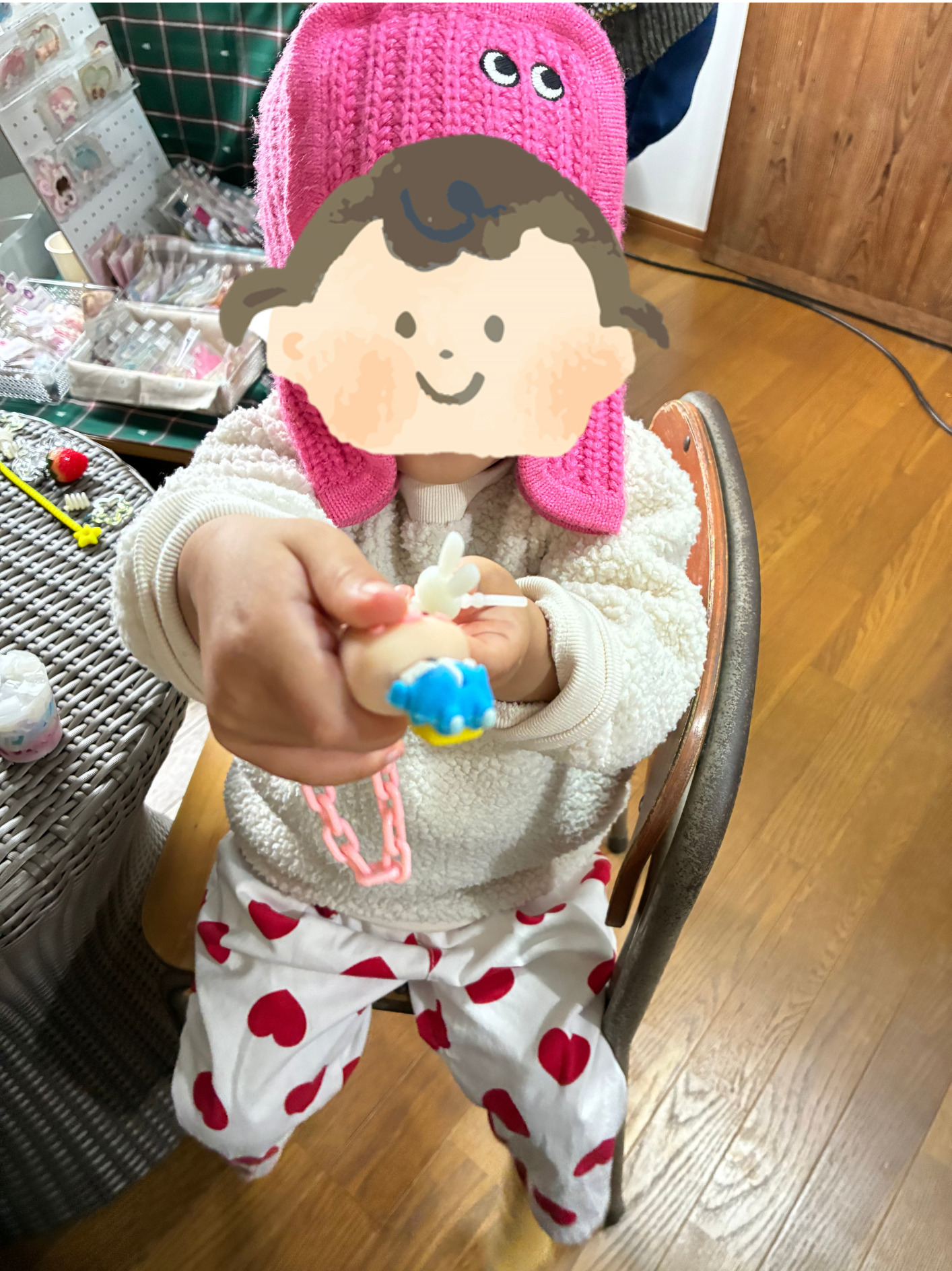 シリコン素材のパーツに通して輪っかをつくれば、完成でーす!