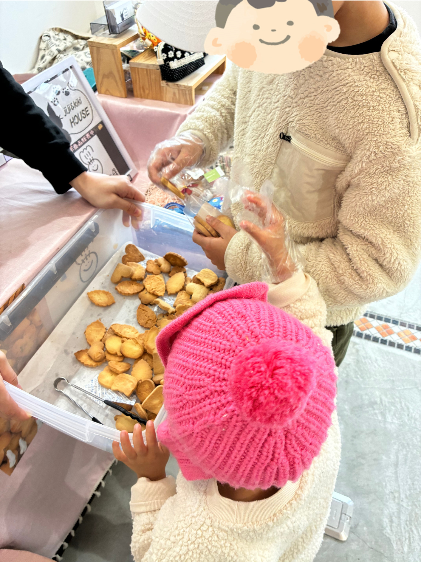 しかし、娘が手袋をしていない方の手でクッキーを触ってしまったため、店員さんからのご指導をいただくことに。(;´д`)トホホ