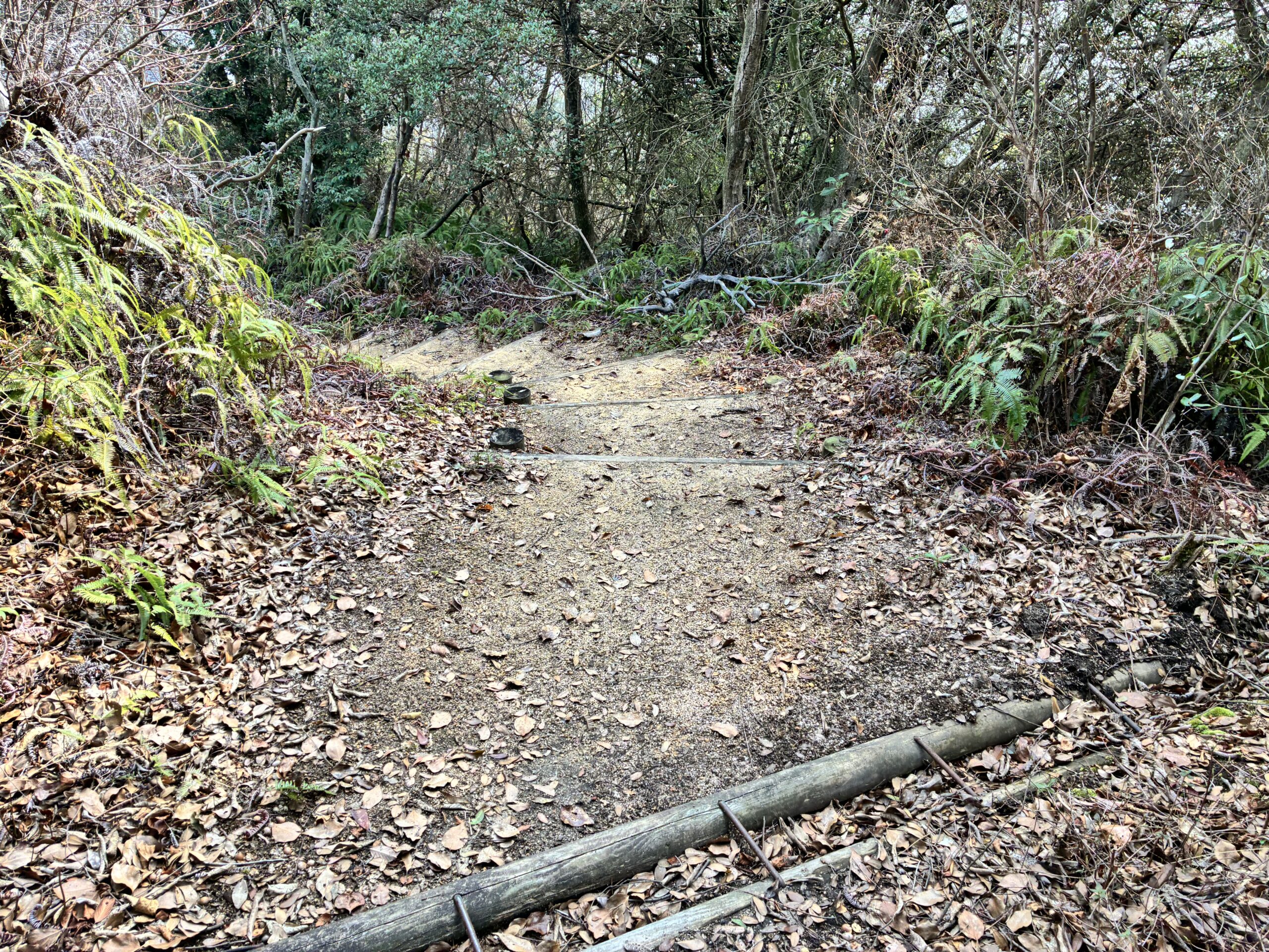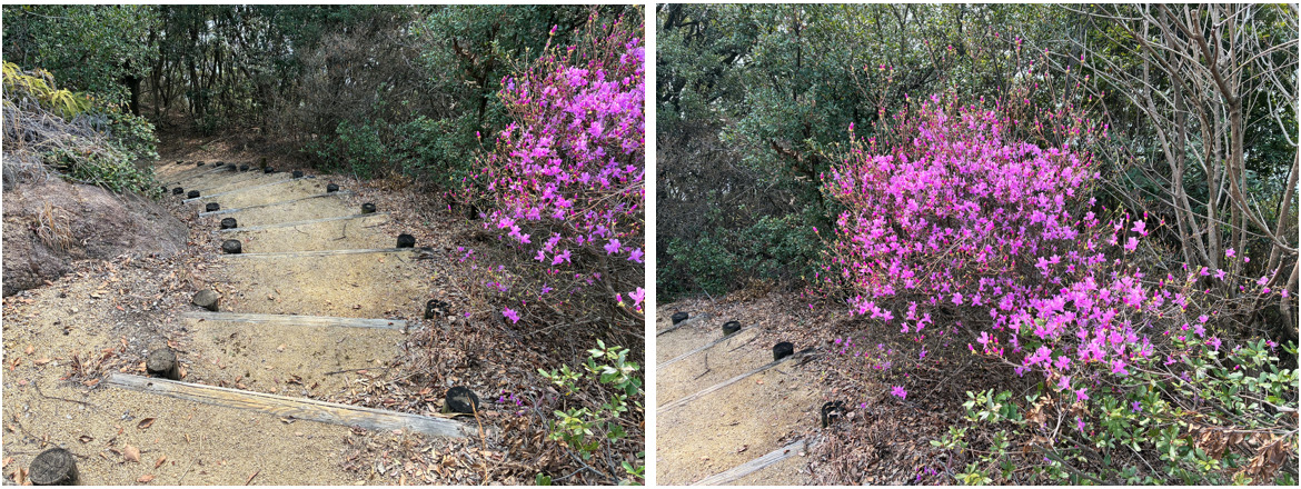 この目印を後にして進むと、次は登り階段が現れ、ここでもツツジを発見。