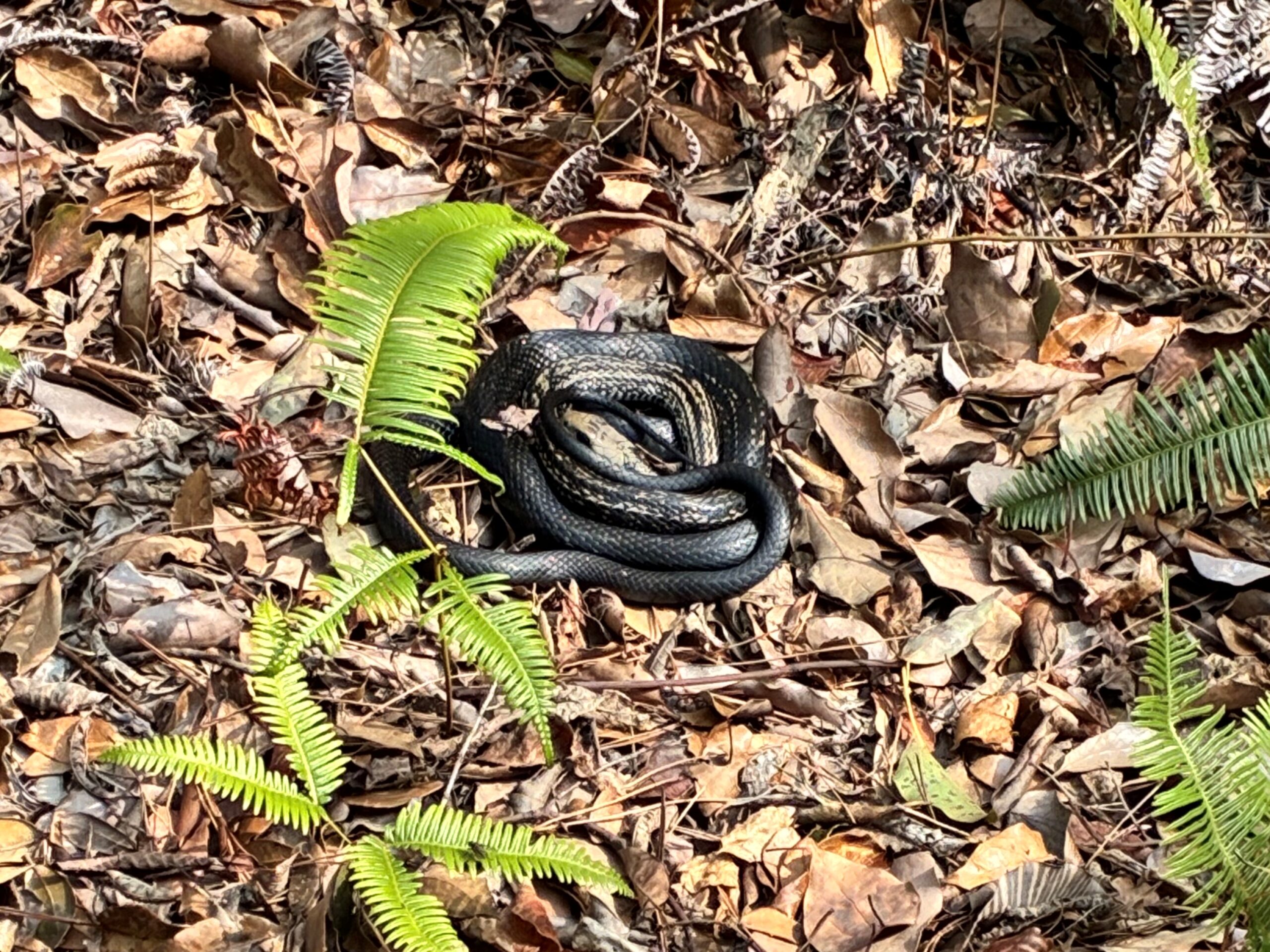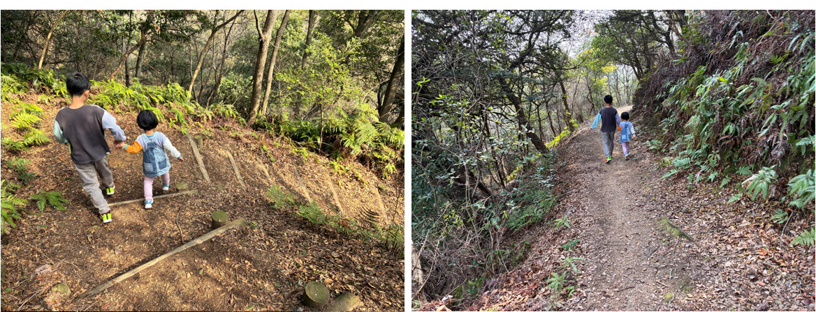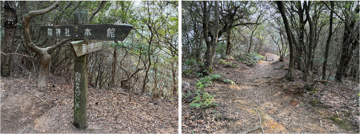 休憩を終えて、再び龍神社へ向かい歩き始めると、そこには、落ち葉がびっしりの敷き詰められた下り坂に遭遇。