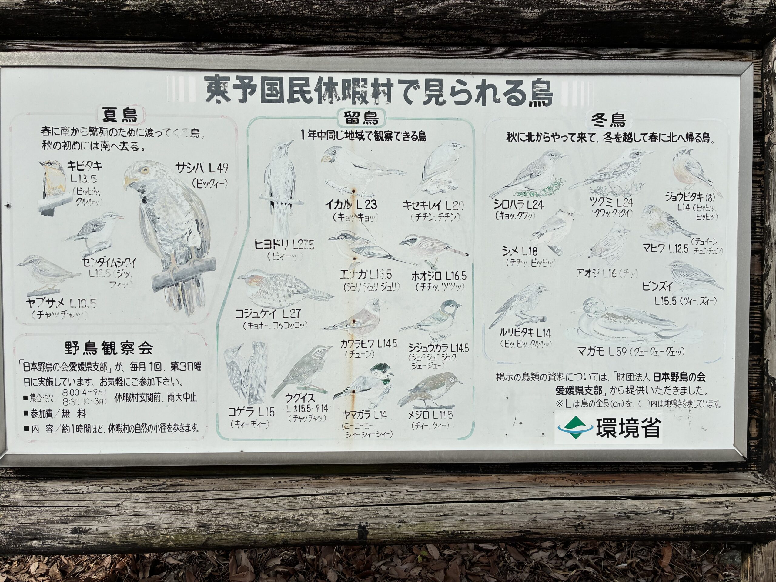 さらに、柵の近くには、この地域で観察できる野鳥の看板が立てられていました。