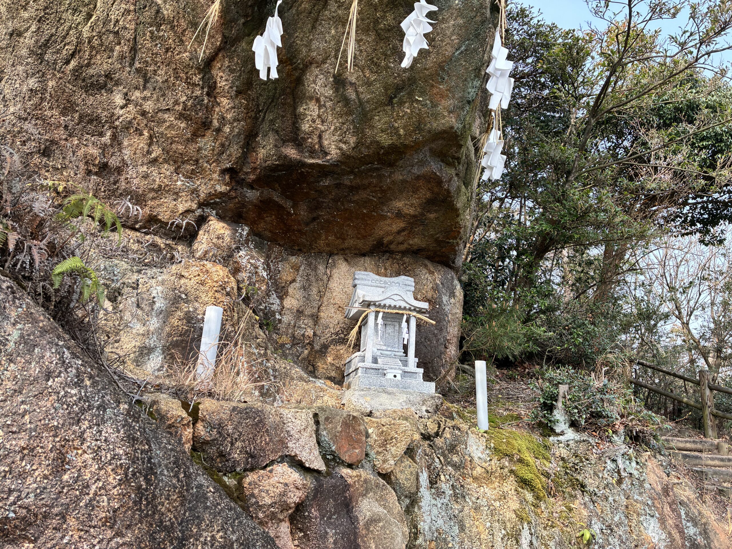 大きいなぁと感心していると、岩の少しのくぼみの所にお社が祭られていました。