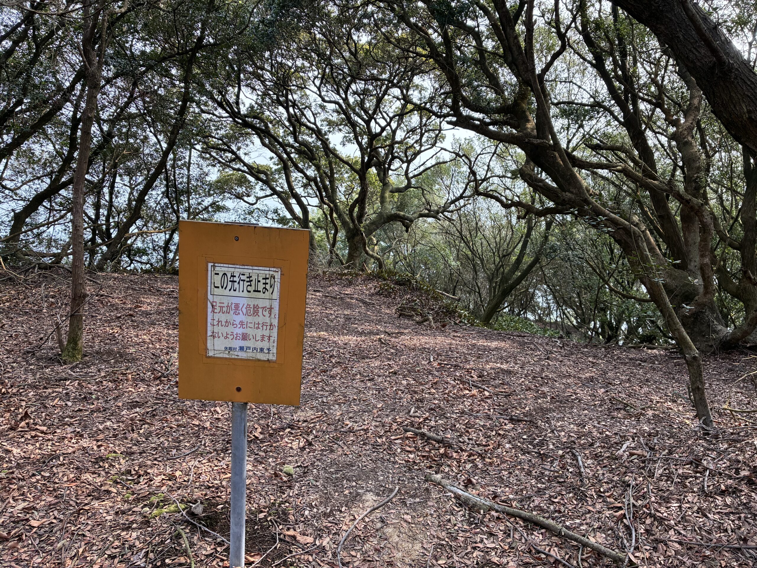 神社からどんな景色が広がっているのかと思い、海の方へ進むと「この先行き止まり」と書かれた1枚の看板が我々を待ち構えてくれていたため、ここからの眺めは断念。