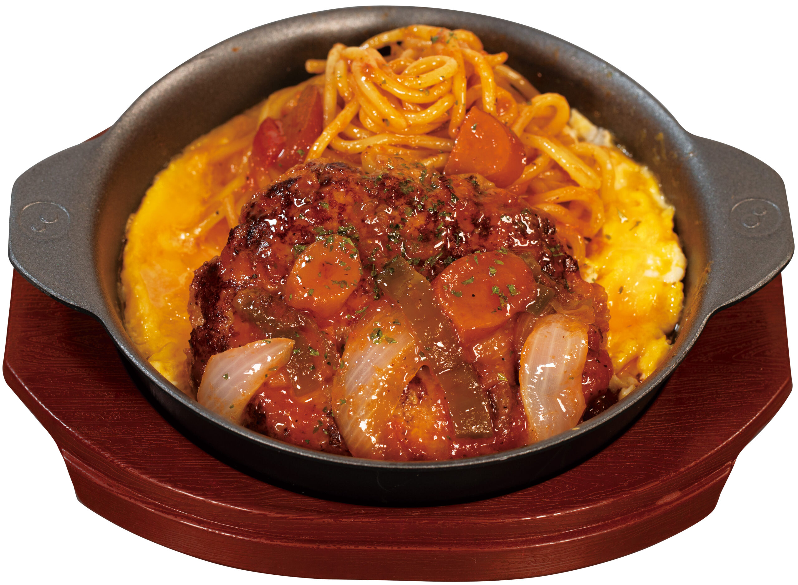 鉄板でジュワっと香ばしく仕上げた「西条てっぱんナポリタン」に、ジューシーなハンバーグをのせた松屋流「西条てっぱんナポリタンハンバーグ」は、食欲そそるナポリタンソースが熱々の鉄板で立ちのぼり、口いっぱいに広がる懐かしくも贅沢な味わいをお楽しみいただけます。