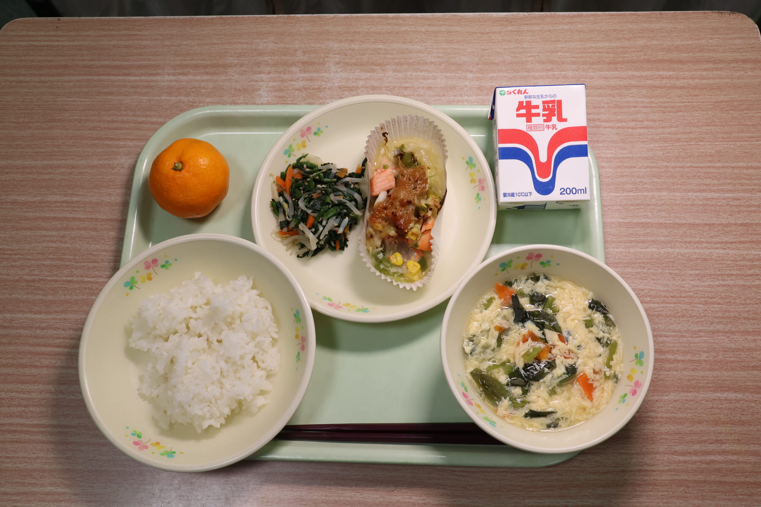 ごはん、ほうれんそうのごまあえ・・・